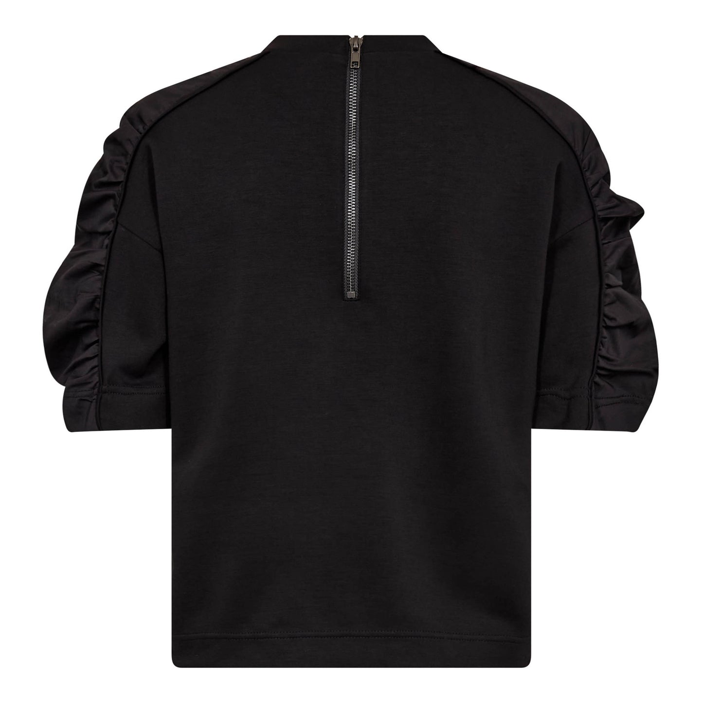 Schwarzes T-Shirt von Co´Couture mit gerafften Ärmeln und Reißverschluss auf der Rückseite. Ein einfarbiges T-Shirt in Schwarz für den Alltag und festliche Anlässe.