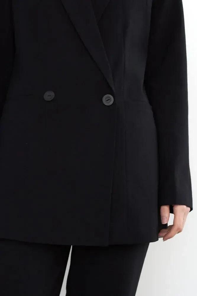 The ultimate power blazer, the finest workmanship, the finest materials and a fit, which gives elegance and a lot of attitude. Our blazer is a must have in her wardrobe, and the blazer can be used for everything from joggers to high heels. Pamper yourself with a real quality product. This blazer is designed for a box -shaped fit that is intentionally oversized. The size of the model is 174 cm and it wears size S.