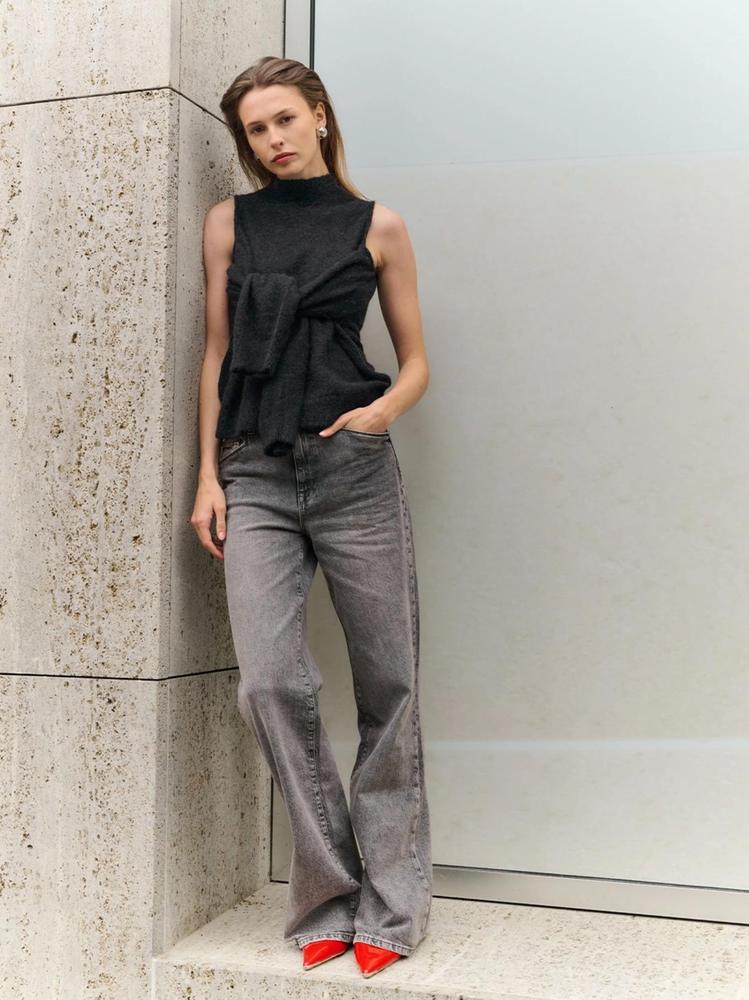 • Soft knitted stand -up collar sweaters with shoulder openings