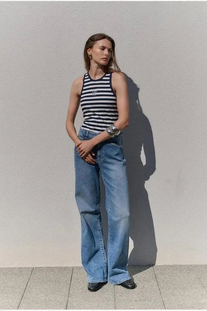 Das Monogram Tanktop von Dante6 ist die perfekte Kombination aus zeitloser Eleganz und modernem Design. Dieses blauweiß gestreifte Baumwolltop bietet nicht nur einen angenehmen Tragekomfort, sondern überzeugt auch durch seine durchdachte Verarbeitung und die hochwertigen Materialien. Ideal für alle, die ein vielseitiges Basic suchen, das sich sowohl für entspannte Sommeroutfits als auch für schicke Looks eignet.