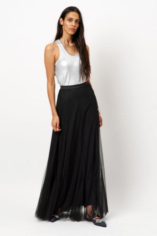 Glänze mit DANTE6 in dem Tanktop Zora in Silver. Dieses luxuriöse Tanktop besteht aus 95%Baumwolle und 5%Elastan. Es ist in metallischem Silber beschichtet und hat ein gesticktes Monogramm vorne. Es ist das perfekte Tanktop zum Lagenlook oder als Einzelstück, für den Tag bis in die Nacht.